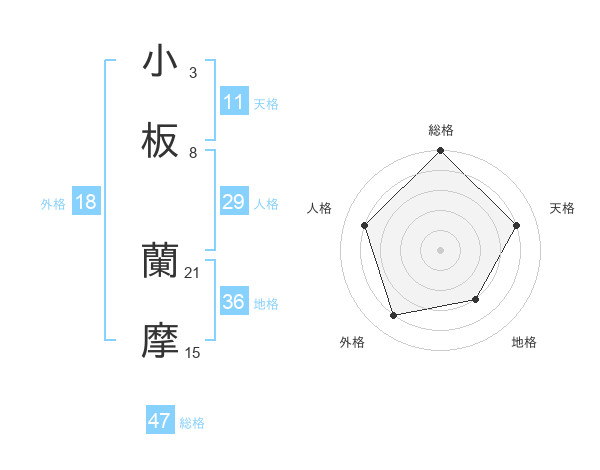 小板 蘭摩さんを姓名の画数から五運を鑑定