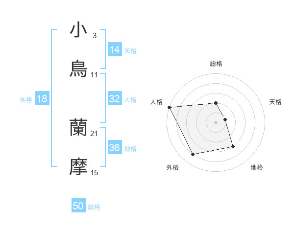小鳥 蘭摩さんの総格は50画の2点!