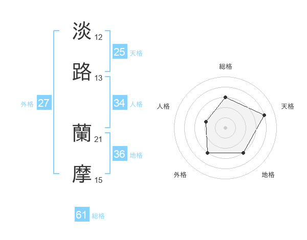 淡路 蘭摩さんの天格は25画の4点!