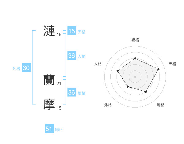 漣 蘭摩さんを姓名の画数から五運を鑑定