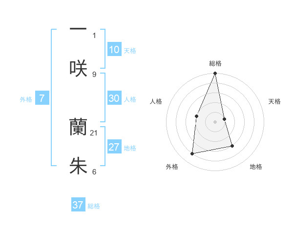一咲 蘭朱さんを姓名の画数から五運を鑑定