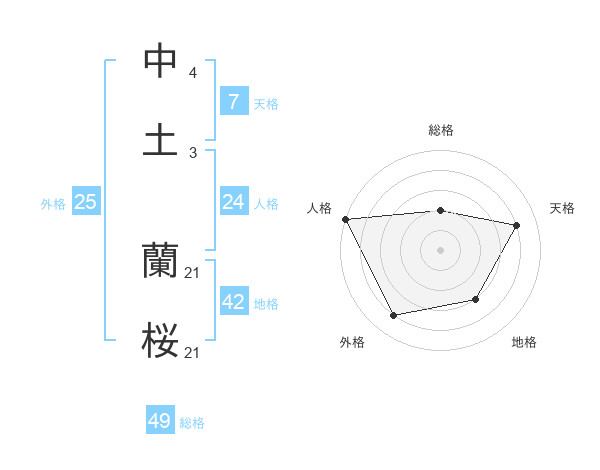 中土 蘭桜さんの天格は7画の4点!
