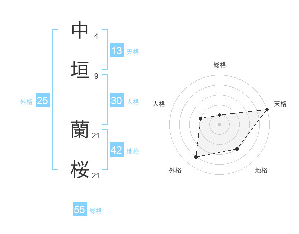 中垣 蘭桜さんの外格は25画の4点!