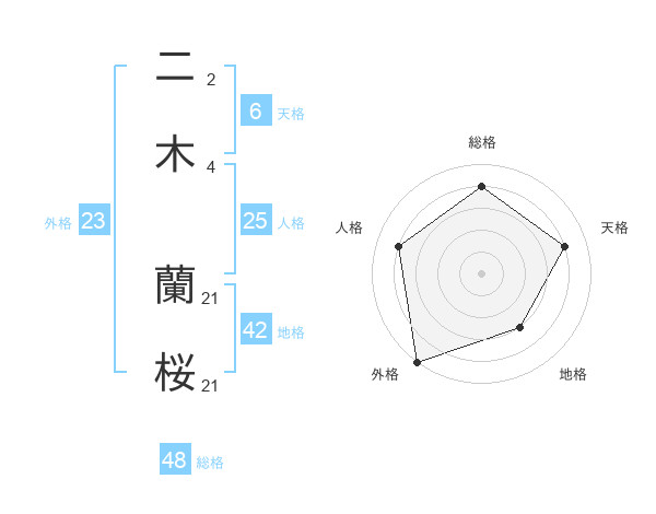 二木 蘭桜さんを姓名の画数から五運を鑑定