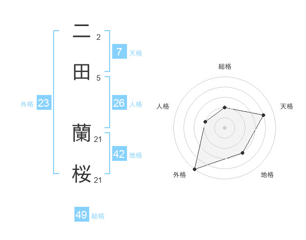 二田 蘭桜さんの外格は23画の5点!