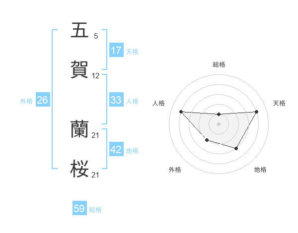 五賀 蘭桜さんを姓名の画数から五運を鑑定