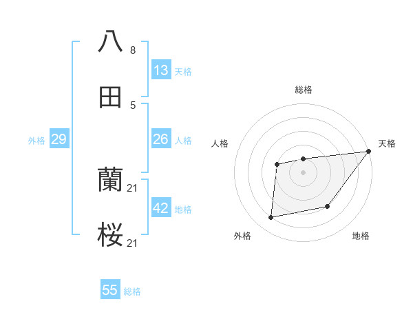 八田 蘭桜さんを姓名の画数から五運を鑑定