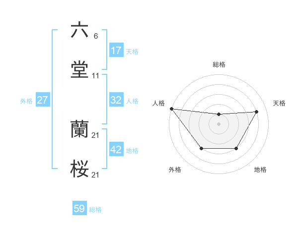 六堂 蘭桜さんを姓名の画数から五運を鑑定
