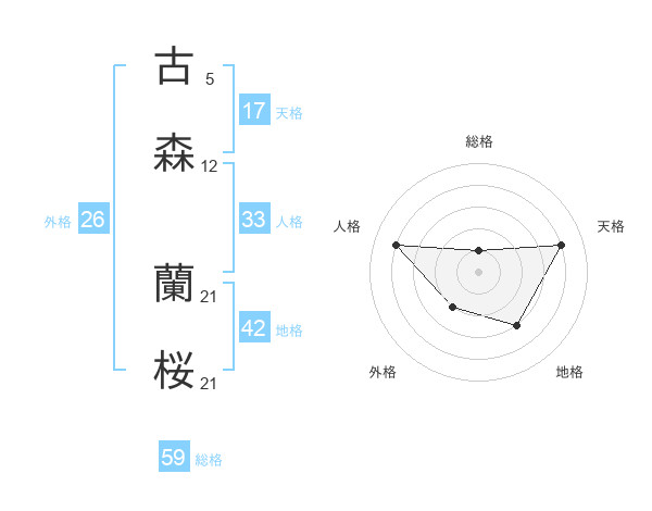 古森 蘭桜さんの天格は17画の4点!
