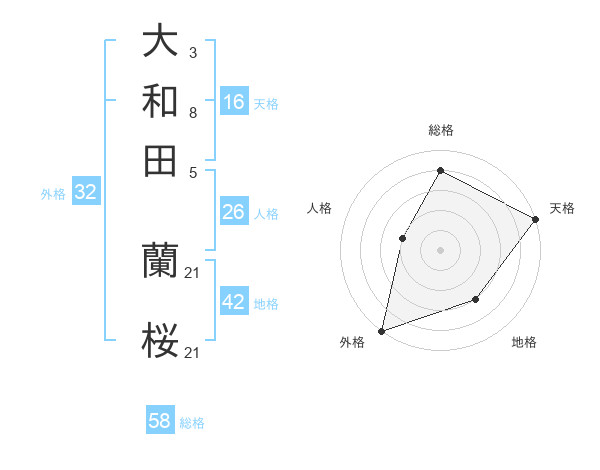 大和田 蘭桜さんを姓名の画数から五運を鑑定