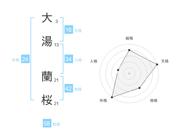 大湯 蘭桜さんを姓名の画数から五運を鑑定