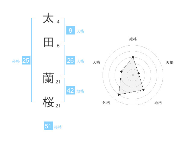 太田 蘭桜さんを姓名の画数から五運を鑑定