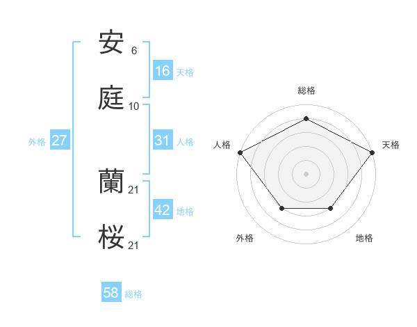 安庭 蘭桜さんを姓名の画数から五運を鑑定
