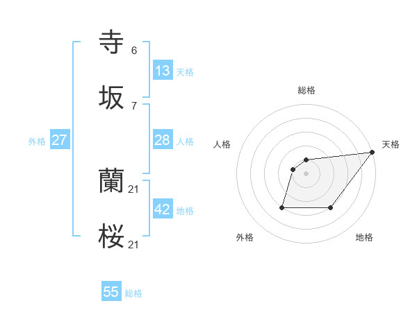 寺坂 蘭桜さんの天格は13画の5点!