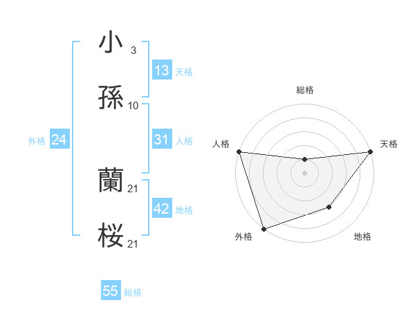 小孫 蘭桜さんを姓名の画数から五運を鑑定