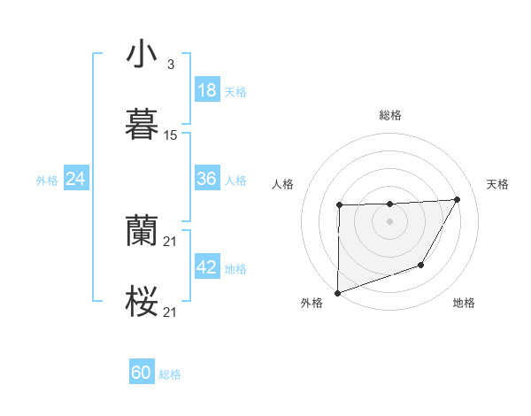 小暮 蘭桜さんの総格は60画の1点!