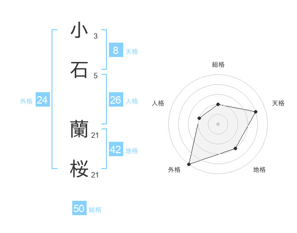 小石 蘭桜さんの天格は8画の4点!