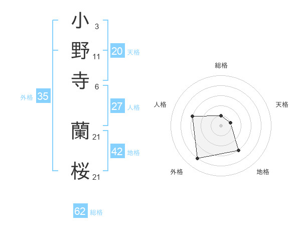 小野寺 蘭桜さんを姓名の画数から五運を鑑定