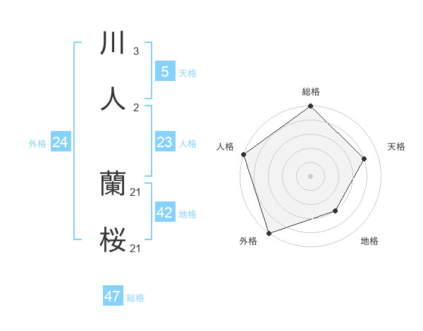 川人 蘭桜さんの総格は47画の5点!