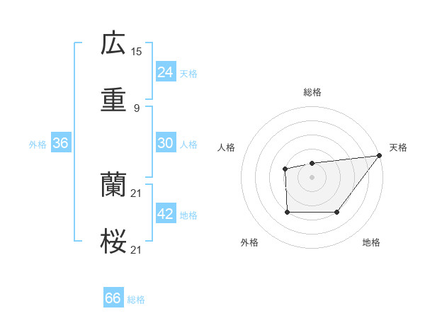 広重 蘭桜さんの天格は24画の5点!
