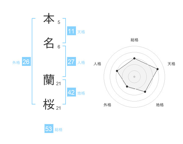 本名 蘭桜さんを姓名の画数から五運を鑑定