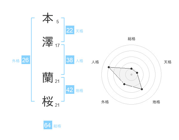 本澤 蘭桜さんの地格は42画の3点!