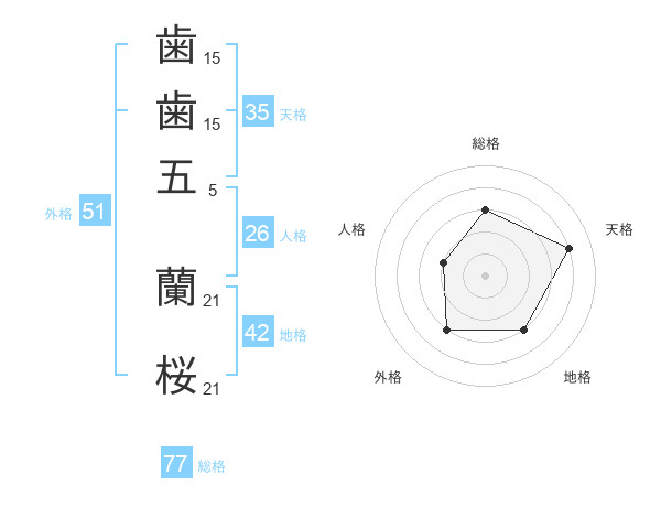 歯歯五 蘭桜さんの総格は77画の3点!