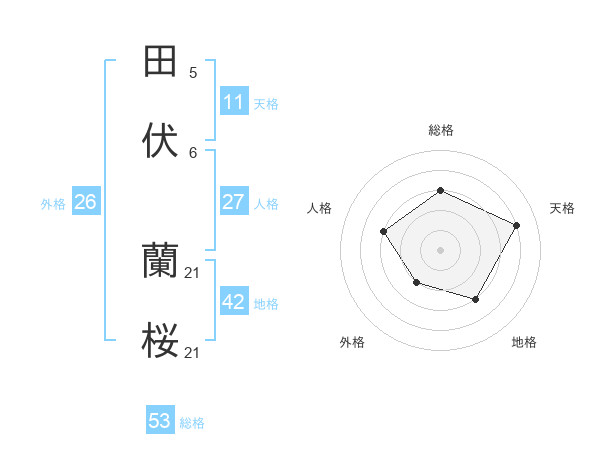 田伏 蘭桜さんの総格は53画の3点!