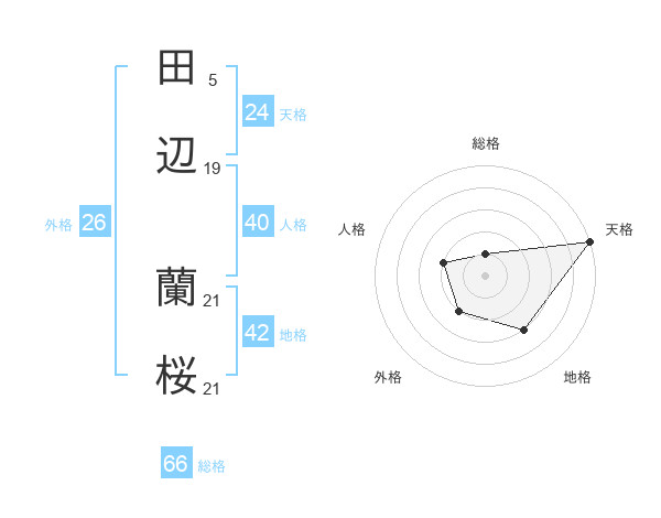 田辺 蘭桜さんの天格は24画の5点!