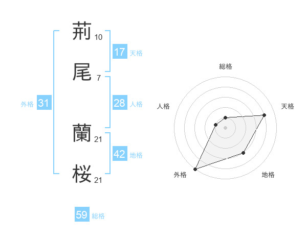 荊尾 蘭桜さんを姓名の画数から五運を鑑定