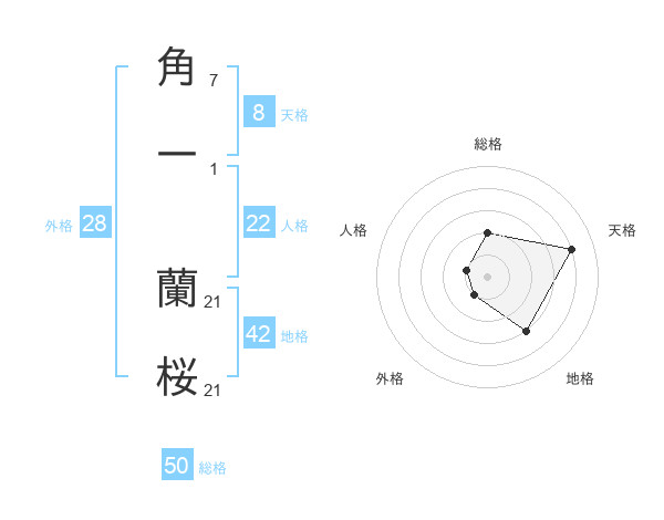 角一 蘭桜さんの総格は50画の2点!