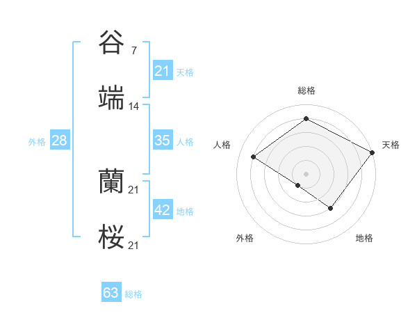 谷端 蘭桜さんの天格は21画の5点!