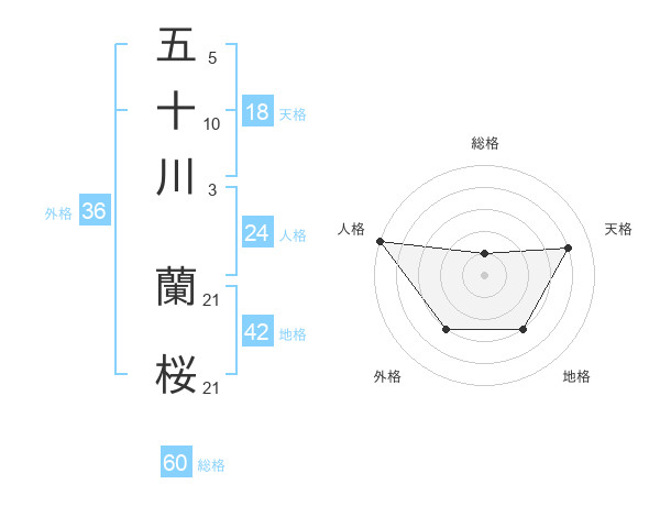 五十川 蘭桜さんを姓名の画数から五運を鑑定