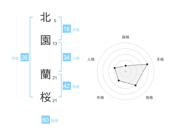 北園 蘭桜さんの総格は60画の1点!
