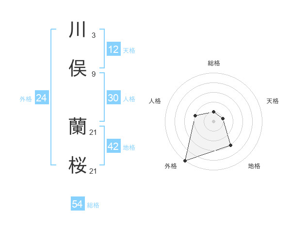 川俣 蘭桜さんの外格は24画の5点!