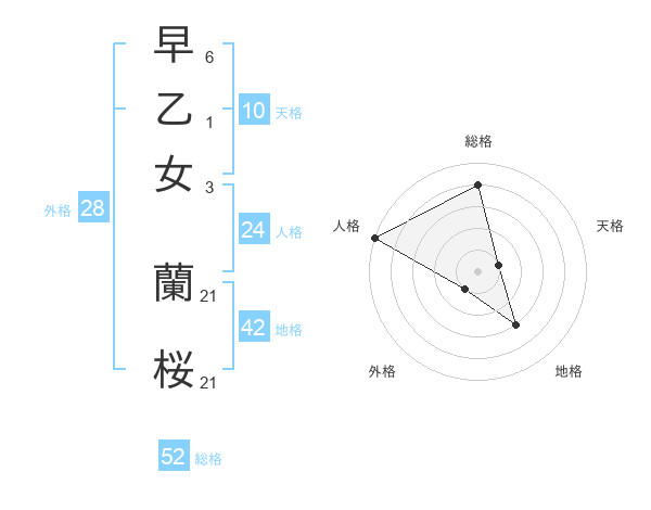 早乙女 蘭桜さんを姓名の画数から五運を鑑定