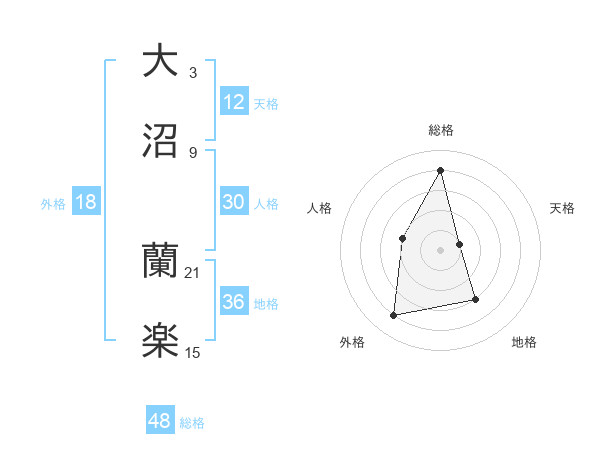 大沼 蘭楽さんを姓名の画数から五運を鑑定