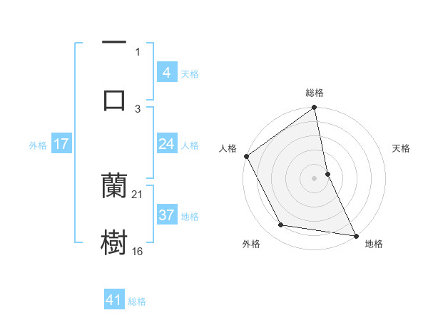 一口 蘭樹さんを姓名の画数から五運を鑑定
