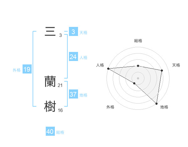三 蘭樹さんの外格は19画の1点!