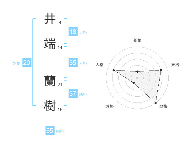 井端 蘭樹さんを姓名の画数から五運を鑑定