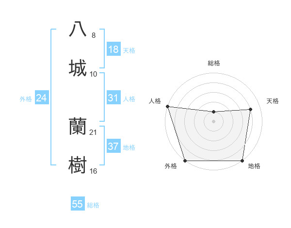 八城 蘭樹さんの総格は55画の1点!
