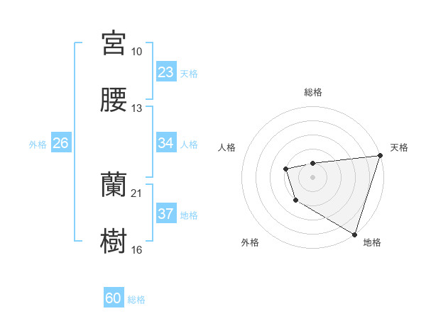 宮腰 蘭樹さんの総格は60画の1点
