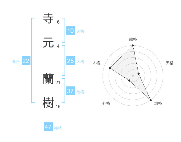 寺元 蘭樹さんを姓名の画数から五運を鑑定