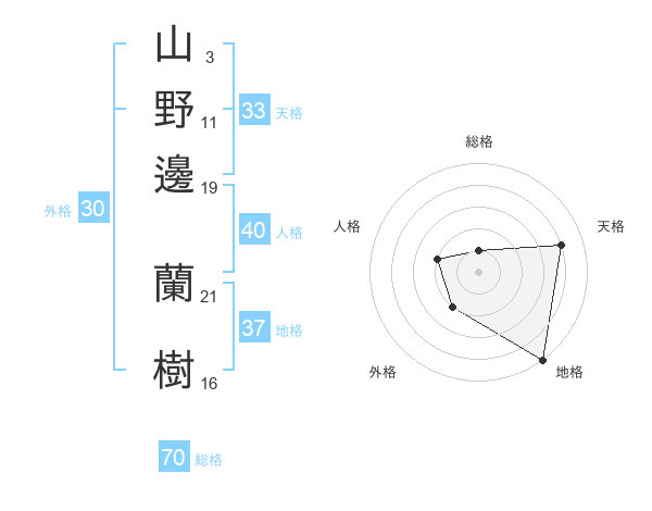 山野邊 蘭樹さんの天格は33画の4点