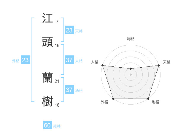 江頭 蘭樹さんを姓名の画数から五運を鑑定
