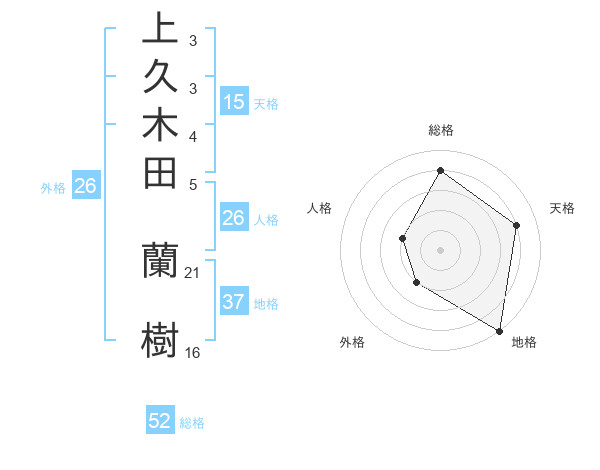 上久木田 蘭樹さんを姓名の画数から五運を鑑定