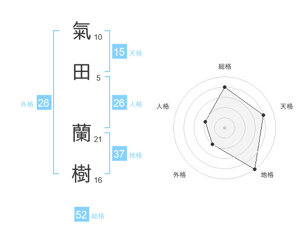 氣田 蘭樹さんの総格は52画の4点!