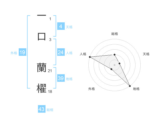 一口 蘭櫂さんの外格は19画の1点!