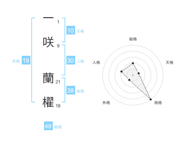 一咲 蘭櫂さんの総格は49画の2点!