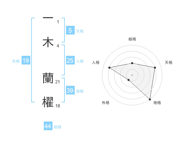 一木 蘭櫂さんを姓名の画数から五運を鑑定